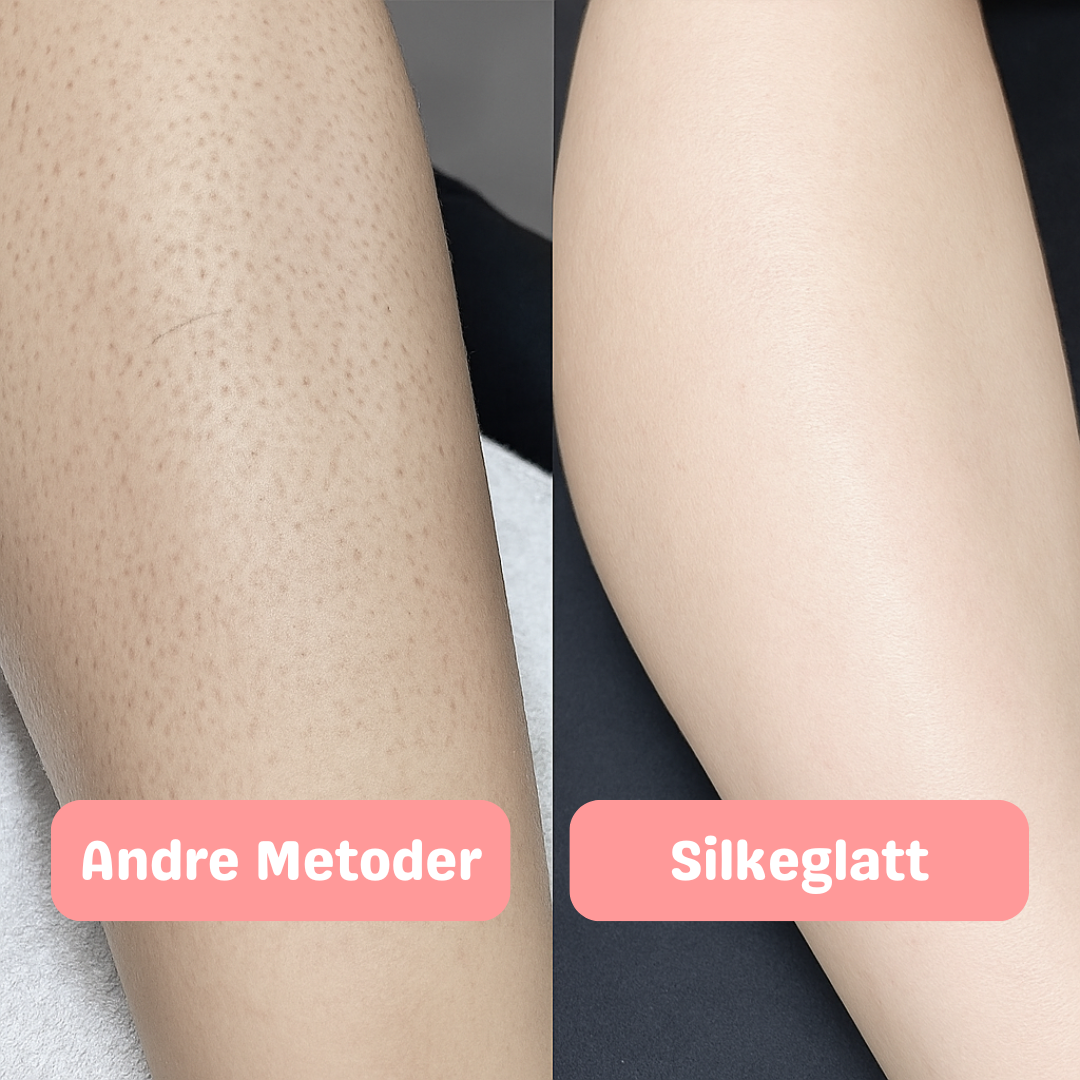 Med to presise hoder fjernes både de synlige hårene og de små som nettopp har begynt å vokse, slik at huden føles glatt og myk lenger.
